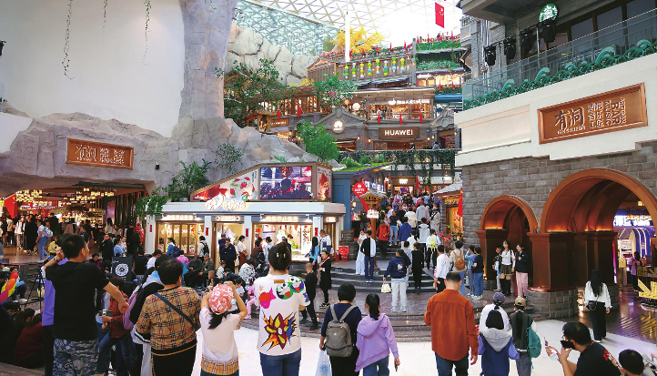 国庆中秋长假期间,长春市假日经济活力迸发,各大商圈流光溢彩、人气爆棚。网红商场“这有山”内游人如织,特色店铺前排起长龙。(吉林日报 记者 潘硕 摄)